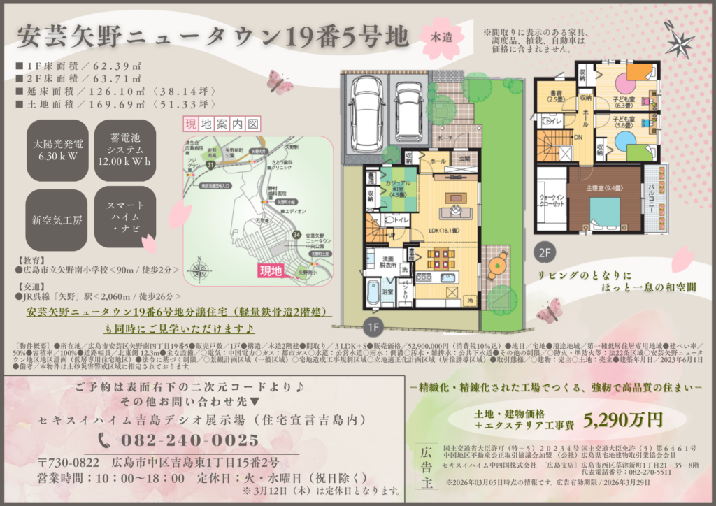 🏠安芸矢野ニュータウン19番6号地分譲住宅(軽量鉄骨造2階建)も同時にご見学いただけます♪