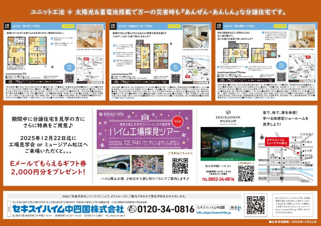 🎁12月22日迄に工場見学会orミュージアム松江に来場いただくと「Eメールでもらえるギフト2,000円分」をプレゼント