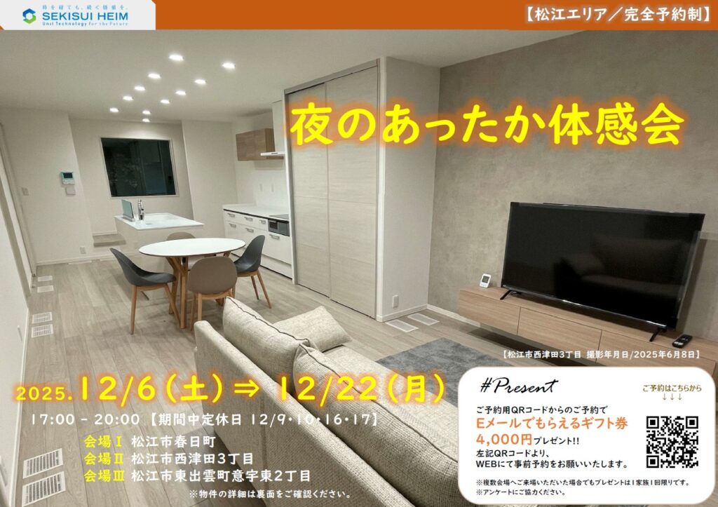夜のあったか体感会を完全予約制にて開催いたします🌞