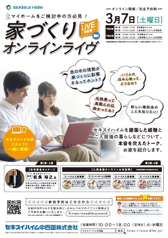 家づくりオンラインライヴを完全予約制にて開催いたします。