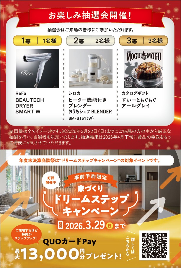 見学会場へご来場いただいた方はお楽しみ抽選会にご参加いただけます。