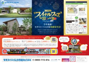 - 2023年10月16日(2023年10月16日~随時 ※予告なく終了する場合がございます。詳細は天山展示場までお問い合わせください)