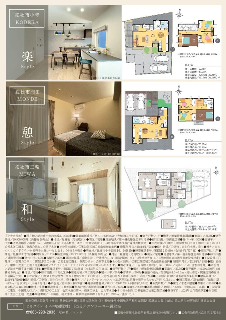 - セキスイハイムRSKGTU展示場 TEL.086-293-2836
