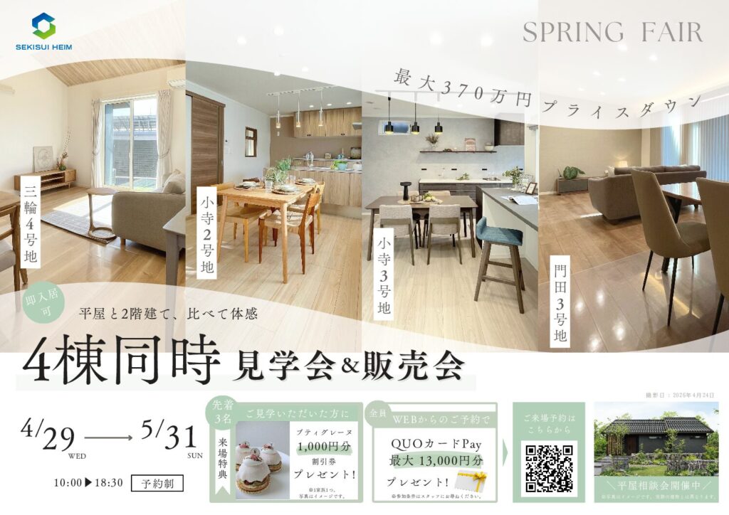 総社エリアにて、4棟同時の特別見学会を開催いたします。