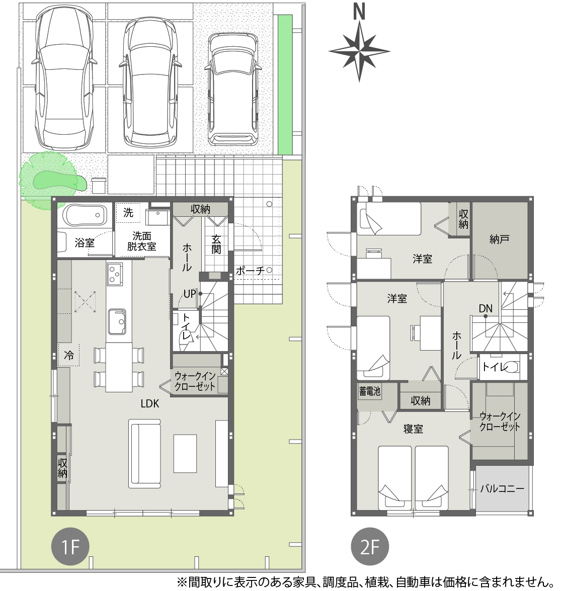 ※間取りにある家具、調度品、植栽、自動車は価格に含まれません