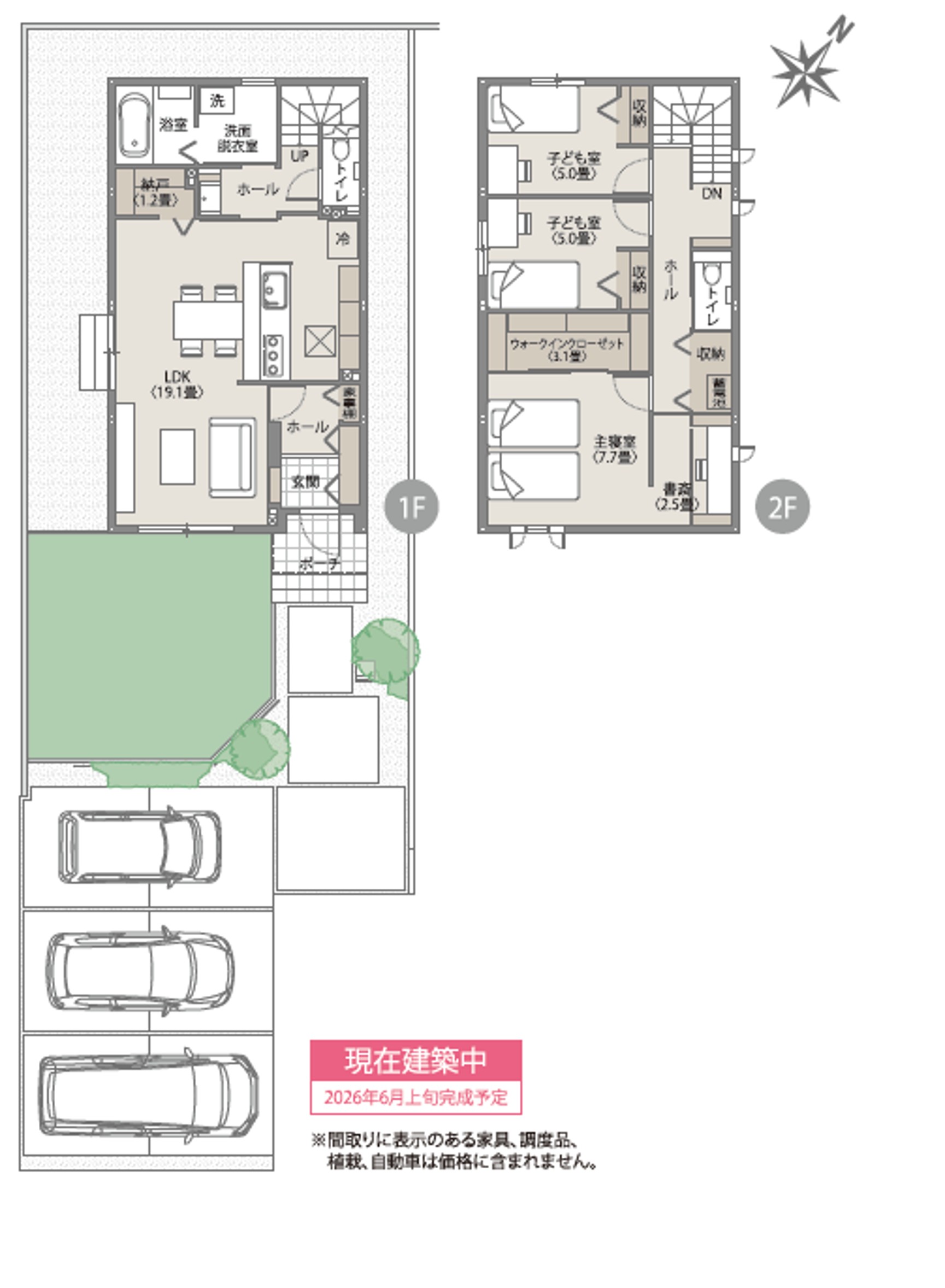 ※間取りにある家具、調度品、植栽、自動車は価格に含まれません