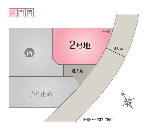 - 1号地への進入路については、2・3号地を購入された方の通行地役権が設定されます。