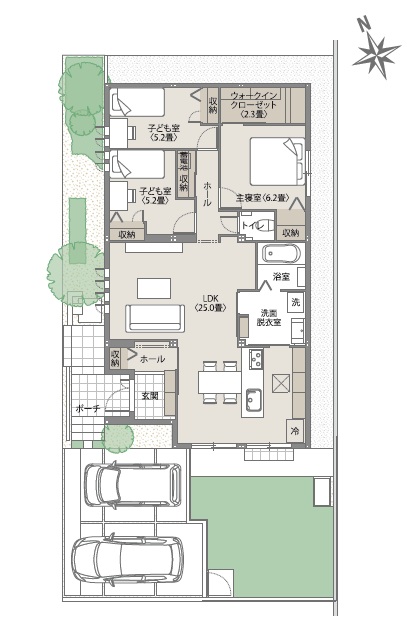 ※間取りにある家具、調度品、植栽、自動車は価格に含まれません