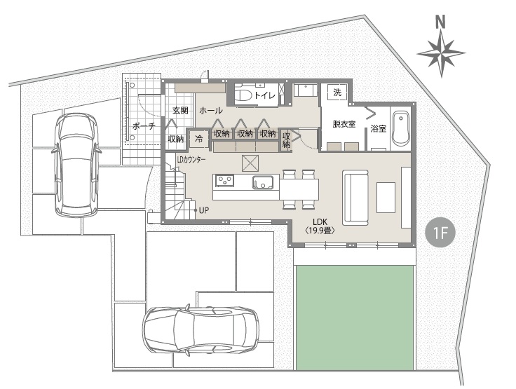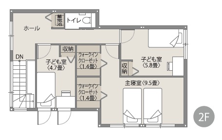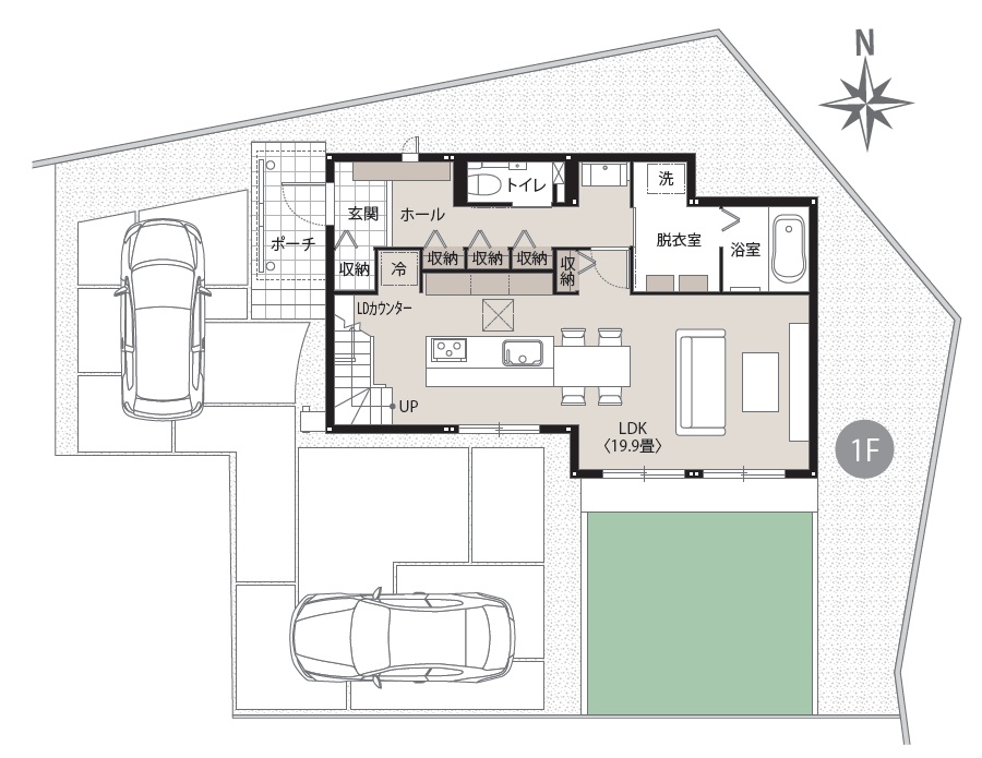 - 延床:108.69㎡(32.87坪) 、1F:56.07㎡(16.96坪) 、2F:52.62㎡(15.91坪)