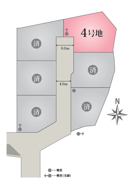 - 分譲地内4.0m~6.0m(位置指定道路)※津山市へ 帰属予定