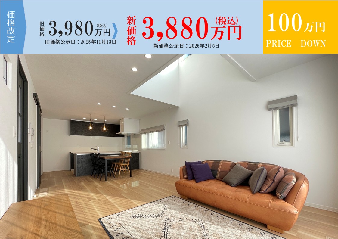 価格改定!! 雨の日も安心なサンルーム付きのお家。リビング上の吹き抜けが明るく広々とした空間をつくりだします。