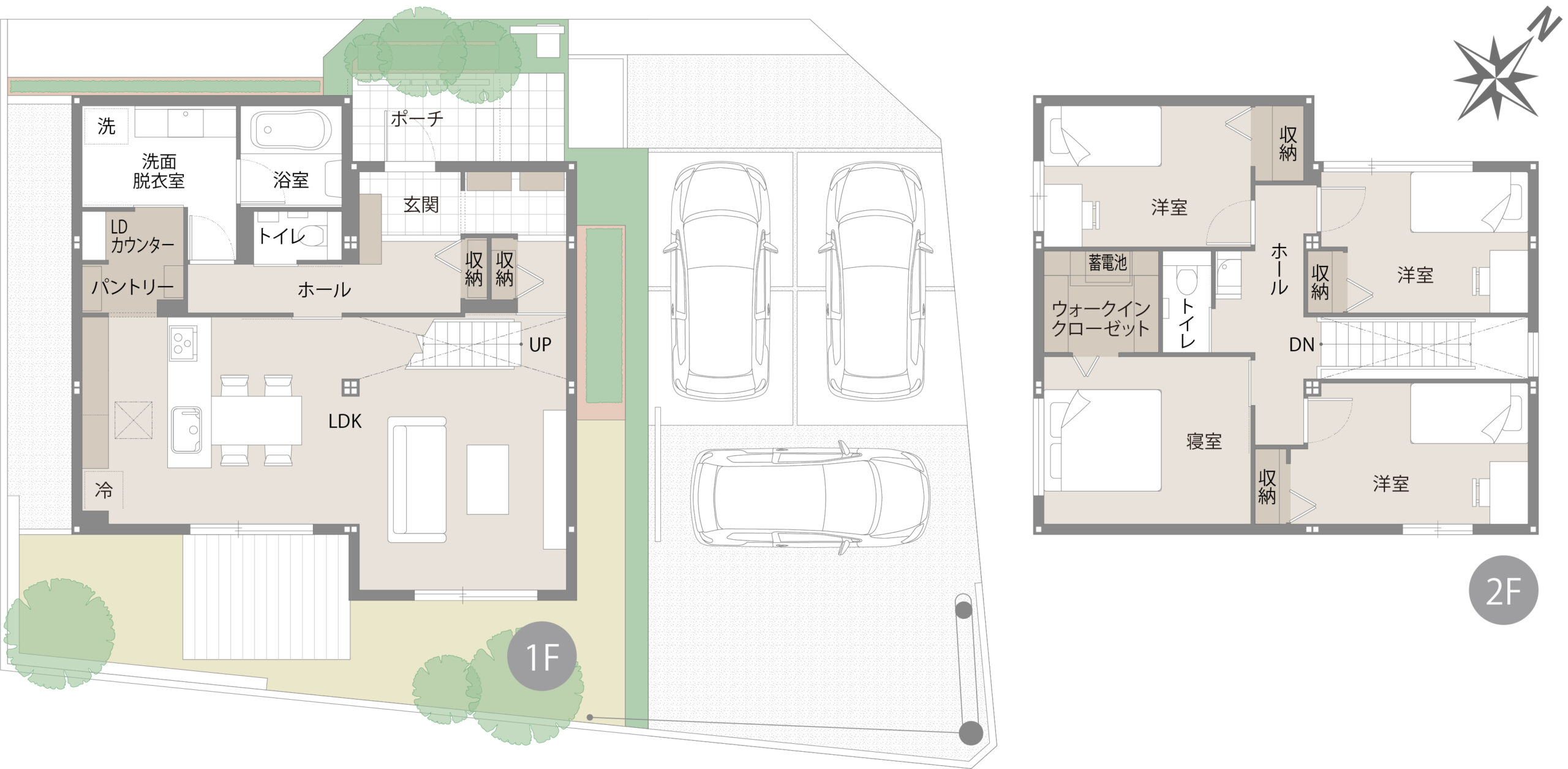 ※間取りにある家具、調度品、植栽、自動車は価格に含まれません