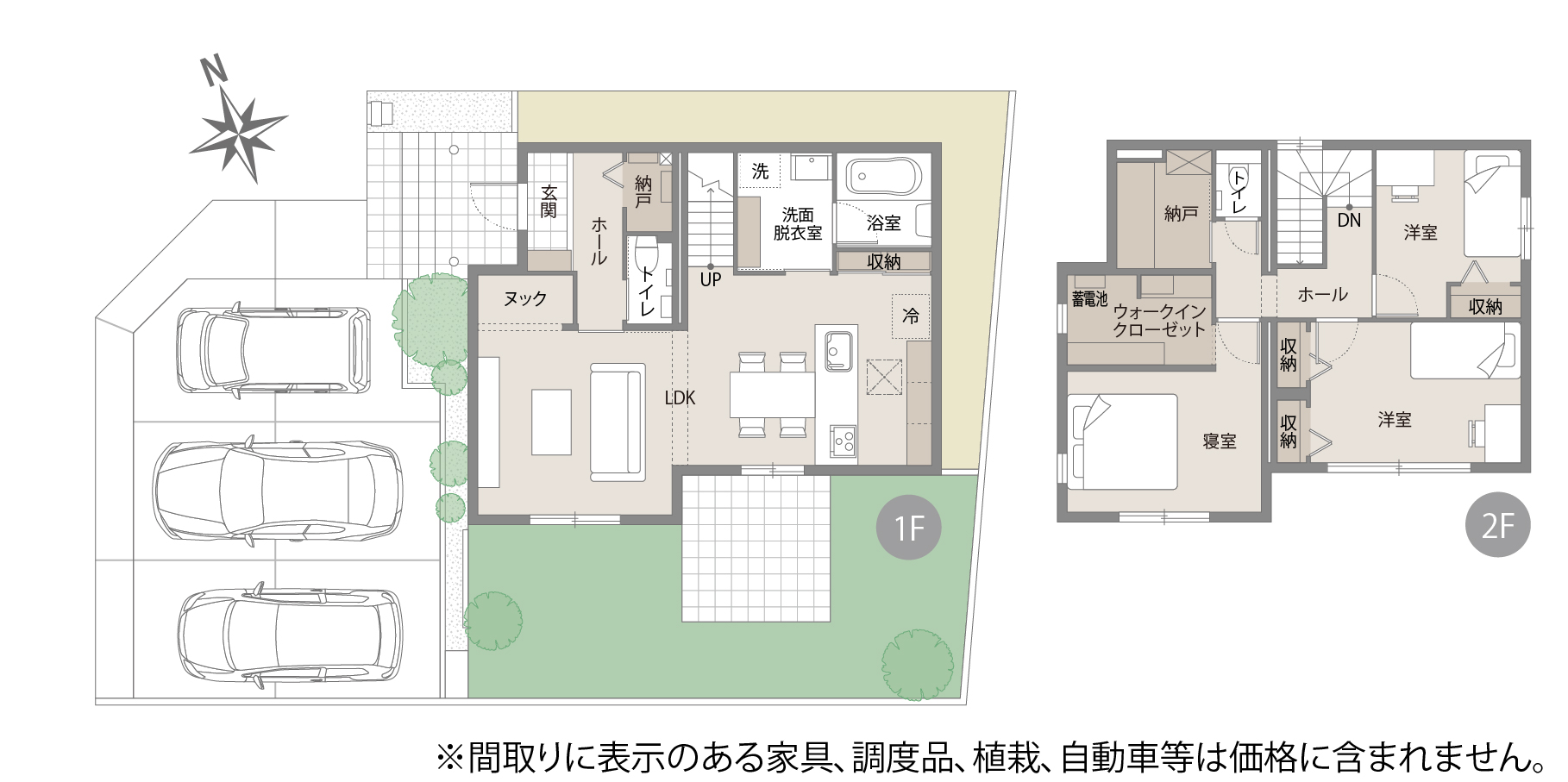 ※間取りにある家具、調度品、植栽、自動車は価格に含まれません