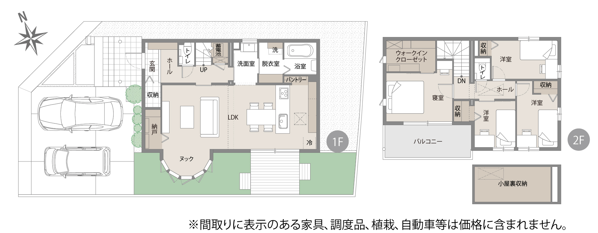 ※間取りにある家具、調度品、植栽、自動車は価格に含まれません