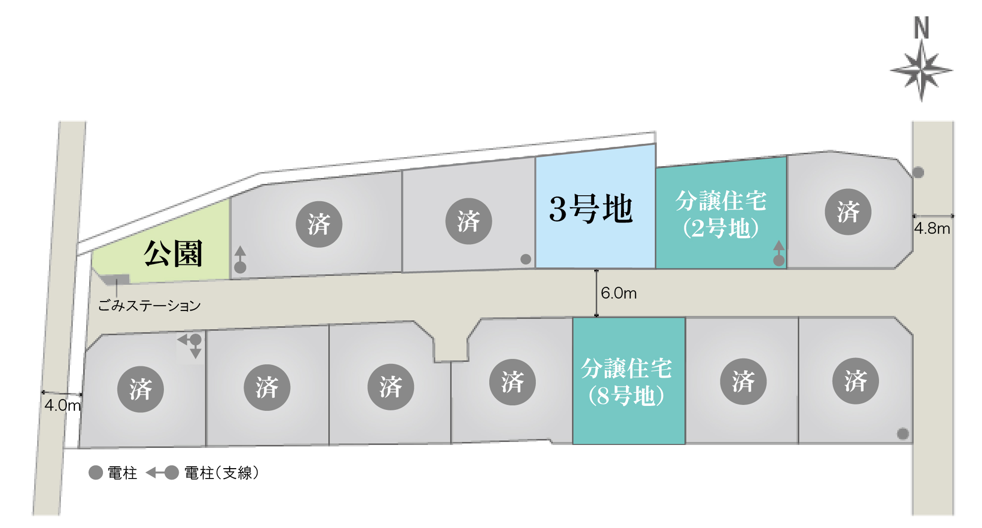 設備の概要 - 電気:中国電力、ガス:都市ガス、水道:公営水道、汚水・雑排水:公共下水道、雨水:側溝