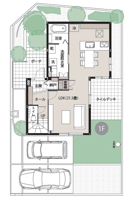 - プライベートガーデン『うちそとテラス』で、視線を気にせず、家族で楽しい休日を過ごせます♪