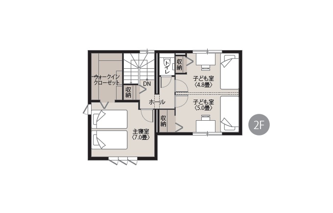 - 延床:98.25㎡(29.72坪) 、1F:54.54㎡(16.49坪) 、2F:43.71㎡(13.22坪)