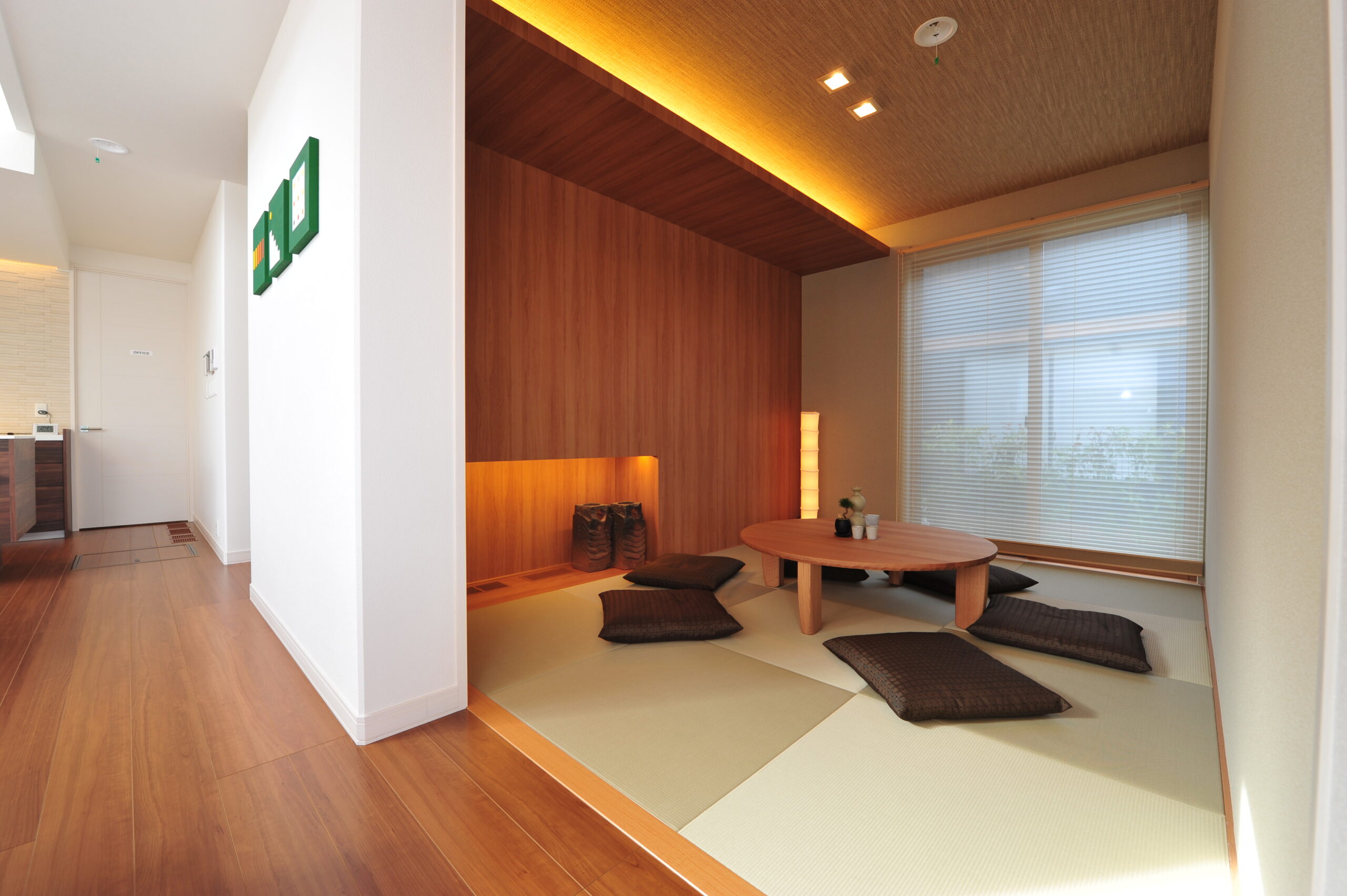 和テイストでありながらも、木目を活かしたモダンな印象の和室。お友達とのおしゃべりや、家族の団らんにも重宝する使い方を選ばない便利な和室空間です。