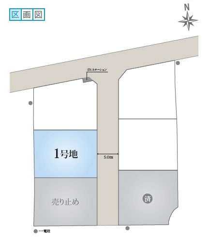 - ●水道加入負担金(129,000円・20mm)、下水道受益者負担金(400円/㎡)、ゴミステーション設置負担金:33,000円(税込)は販売価格に含む。●私道部分とゴミステーション用地は6分の1の共有持分とし所有者で維持・管理を行うものとします。 ●281番10(3号地)はセットバック部分が6.6㎡あります。