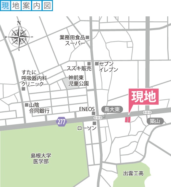 - 一畑バス「築山新町」バス停より徒歩4分(約260~280m)