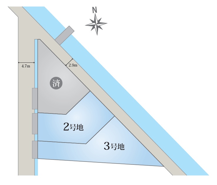- 西側4.7m、北東側2.9m