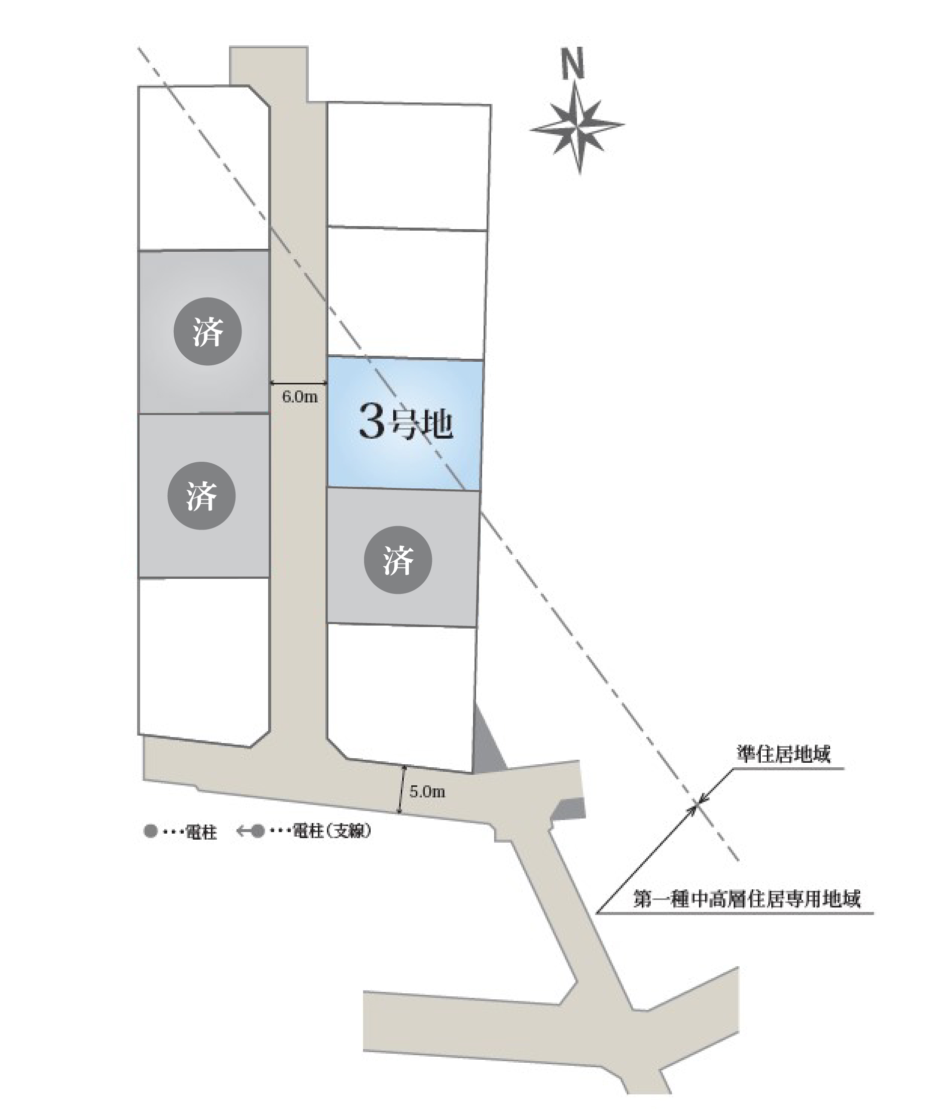 設備の概要 - 電気:中国電力、ガス:都市ガス、水道:公営水道、汚水・雑排水:公共下水、雨水:側溝