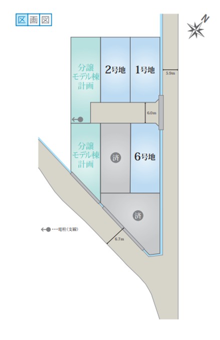 - 団地内幅員6.0m、北東側幅員6.0m公道、南西側幅員6.5m公道