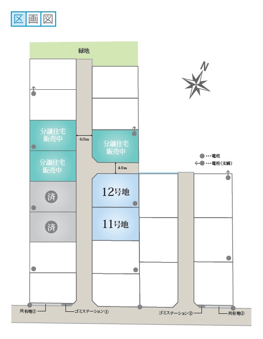 - 境界工事負担金、上水道負担金、下水道受益者負担金、ゴミステーション設置負担金は販売価格に含む