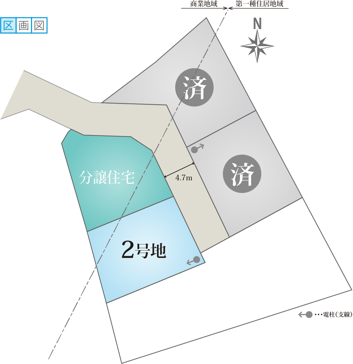 - 第一種住居地域、2号地の一部:商業地域