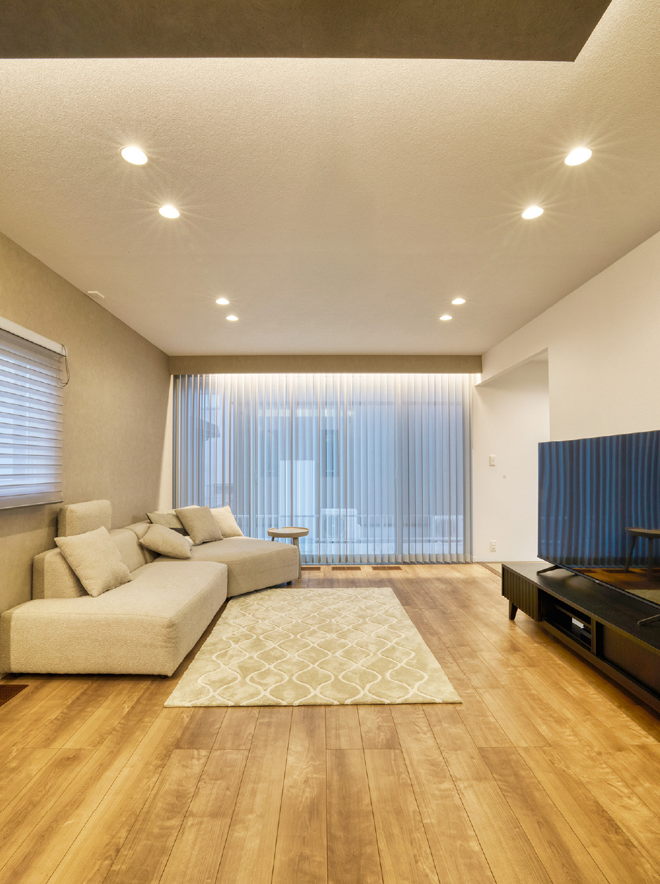 視覚的な広がりと心地よさを両立した開放的なリビング空間。