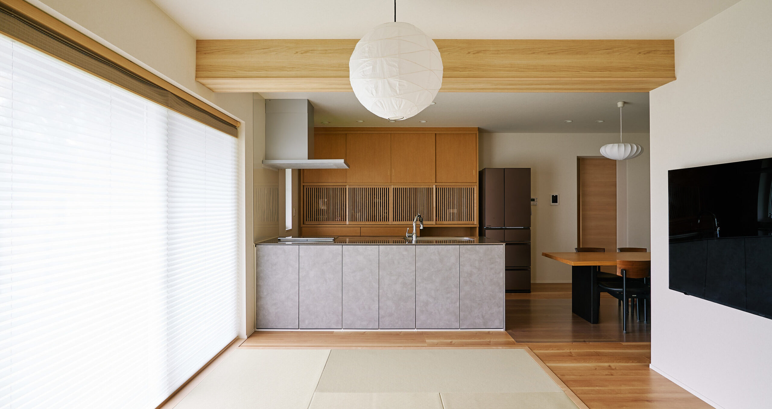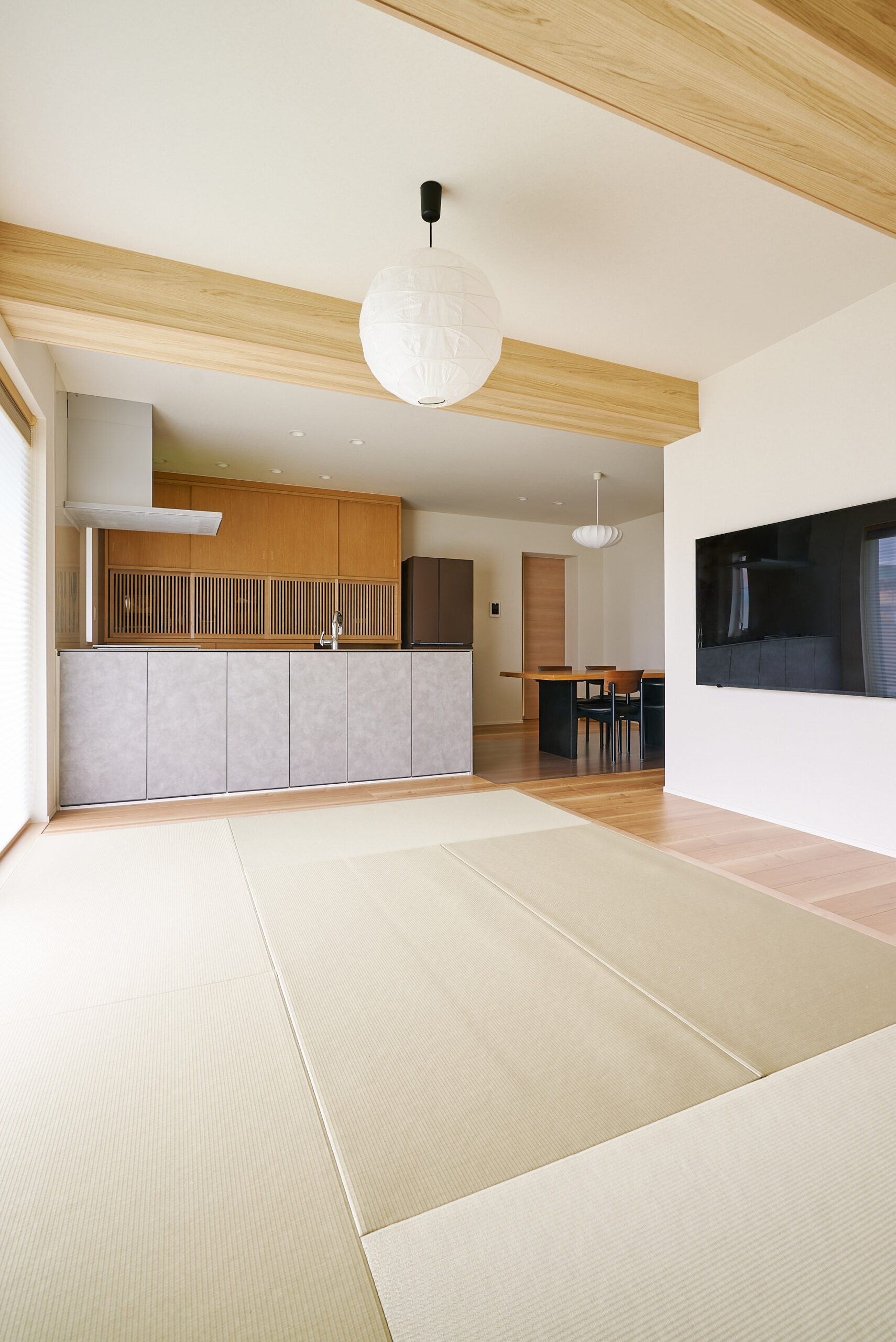 伝統的な畳の安らぎを現代のライフスタイルへ。段差のないフラット設計が叶える開放感あふれるLDK。