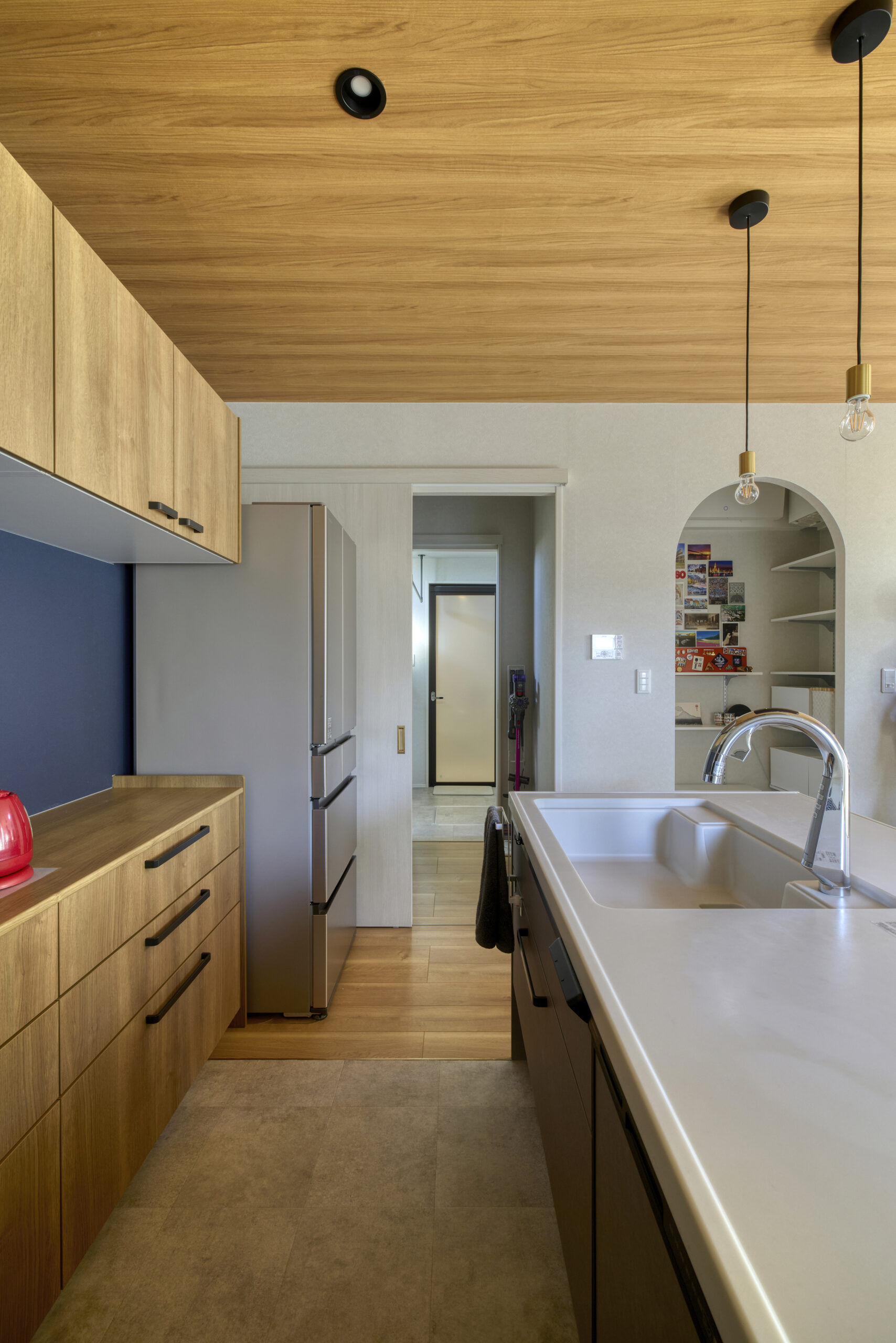 アーチ状の開口が、パントリーに特別な表情を。開放的でありながら、角が取れた優しいデザインが、空間に柔らかなリズムを生み出し、LDK全体の上質な雰囲気に。