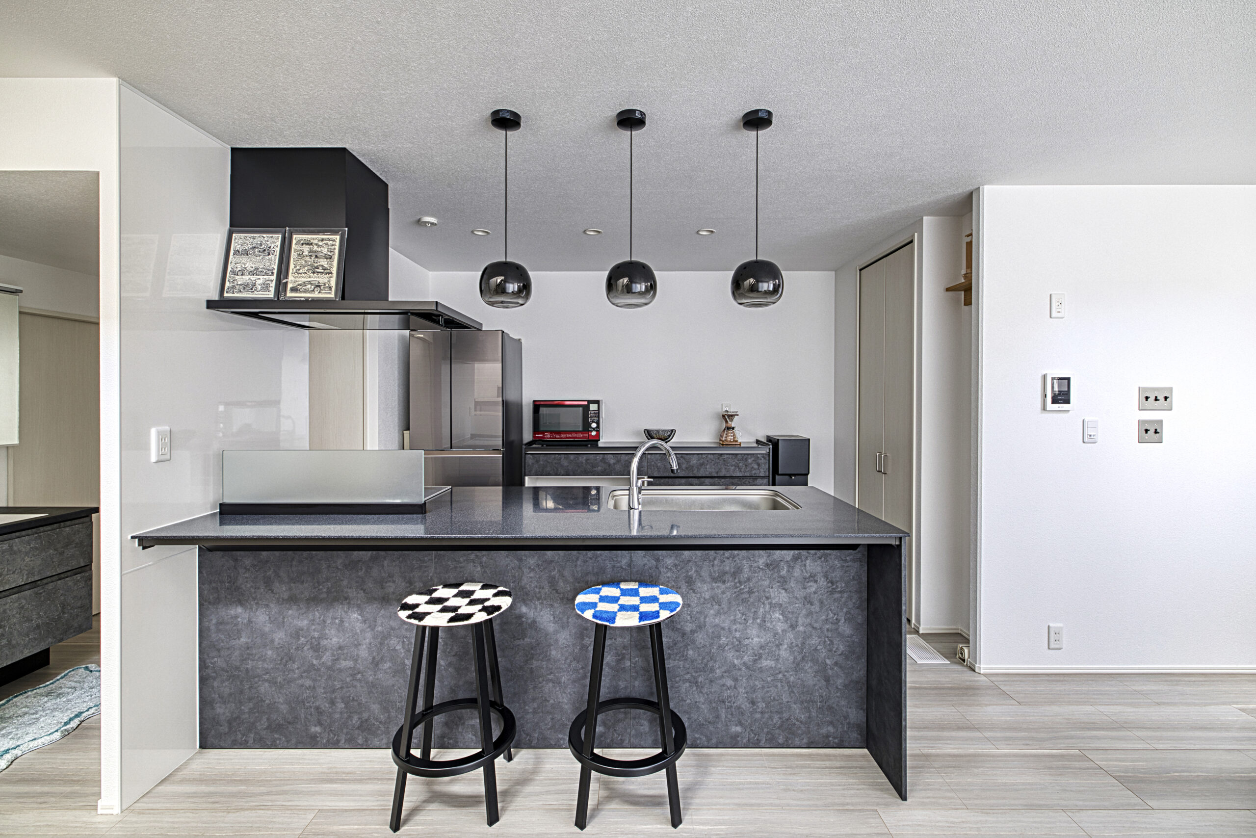 遊び心を添えたモダンデザイン。モノトーンで統一された、洗練された大人のキッチン空間。
