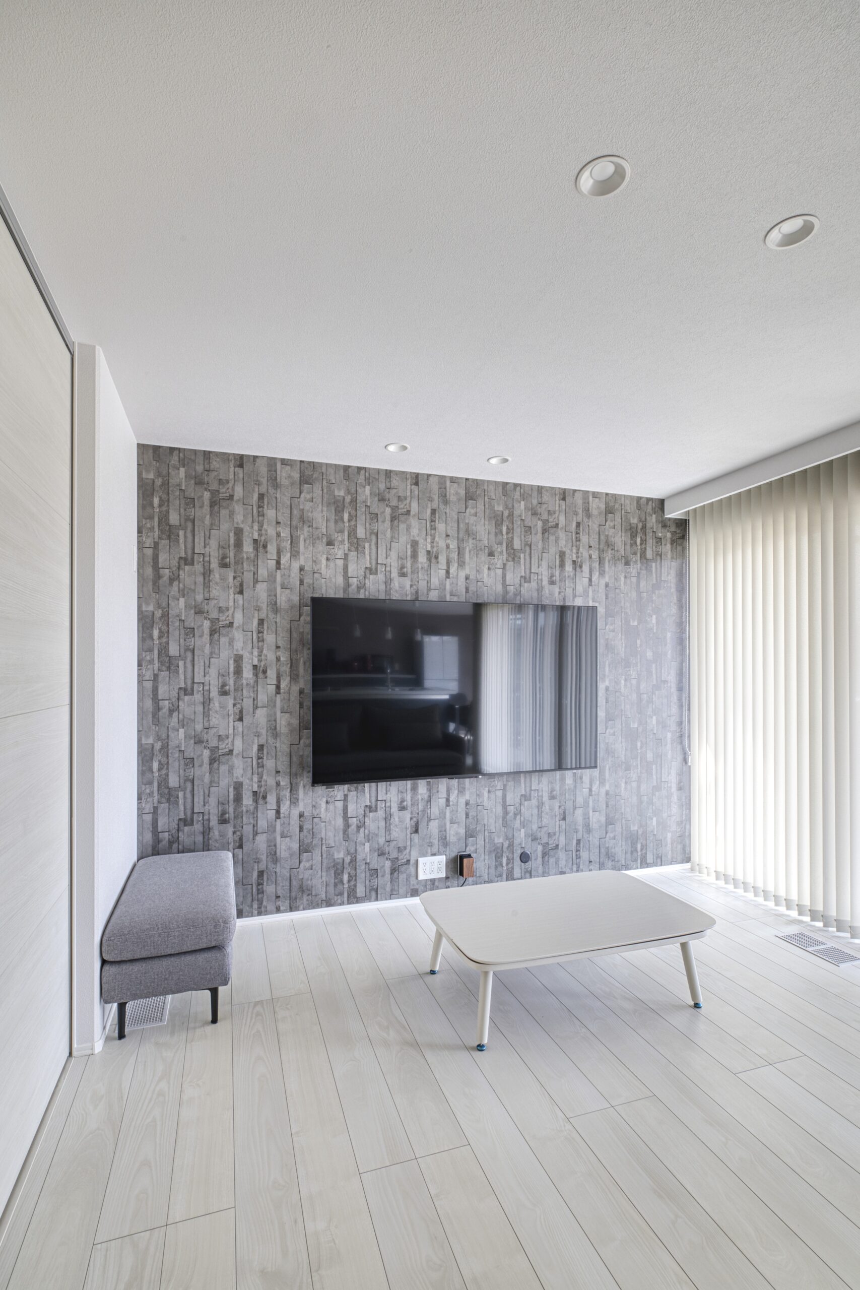 お子様がのびのびと過ごせる広さを確保した憩いの場。窓をあけるとタイルデッキがフラットにつながりより広々使えます。お子様が成長し、夜の映画などを楽しめるようになれば、間接照明で昼と夜の雰囲気を使い分けるご予定。
