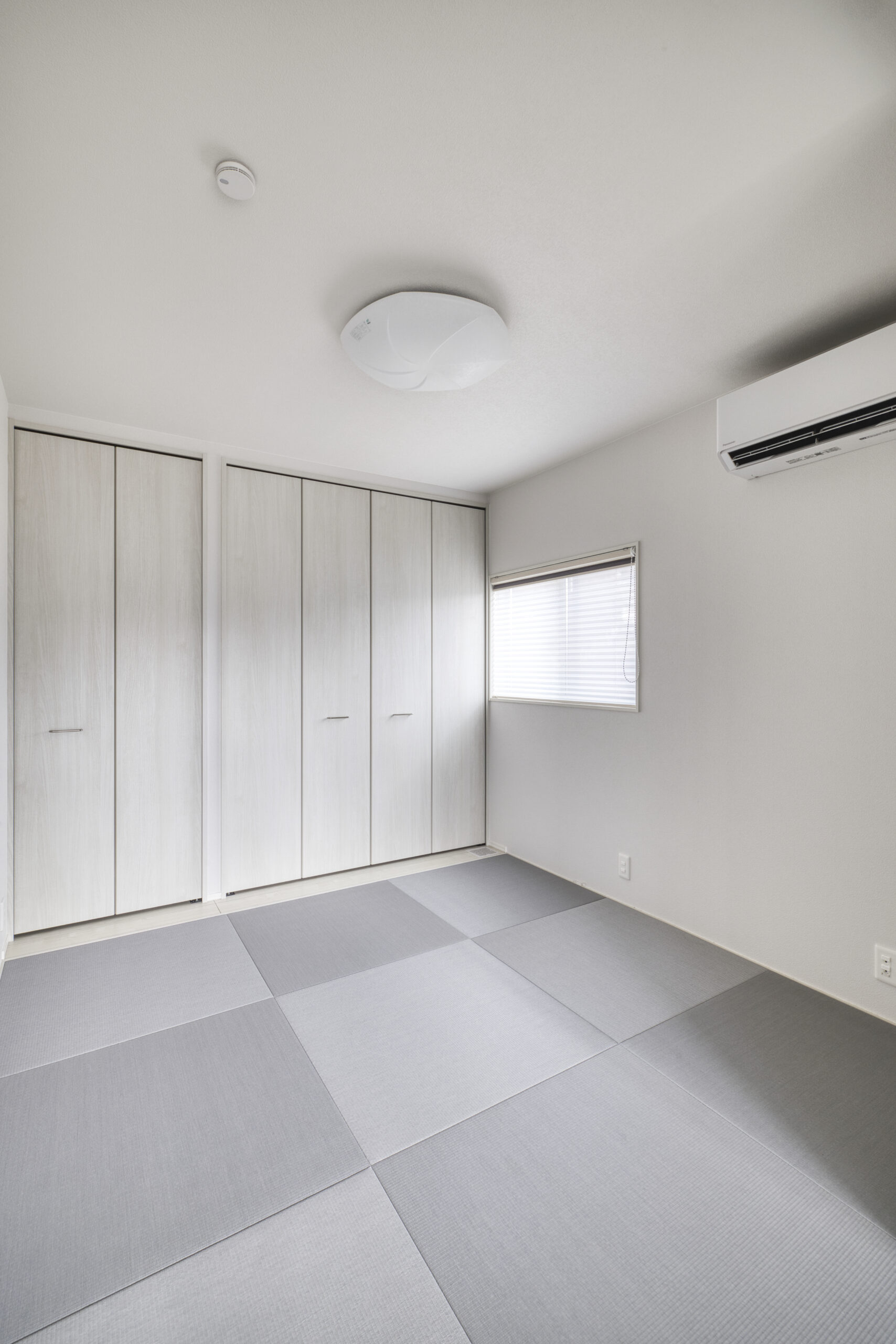 住まい全体のシックなトーンと美しく調和するグレーの和の空間。リビングと隣接させることで、家事をしながら生活することがとても楽に。