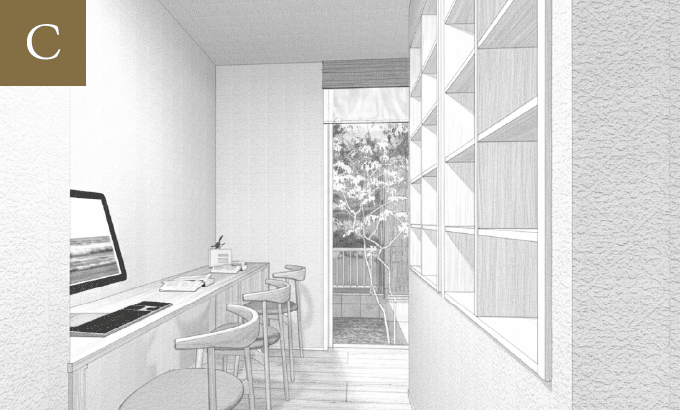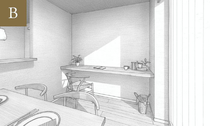 スタディーコーナーのある家