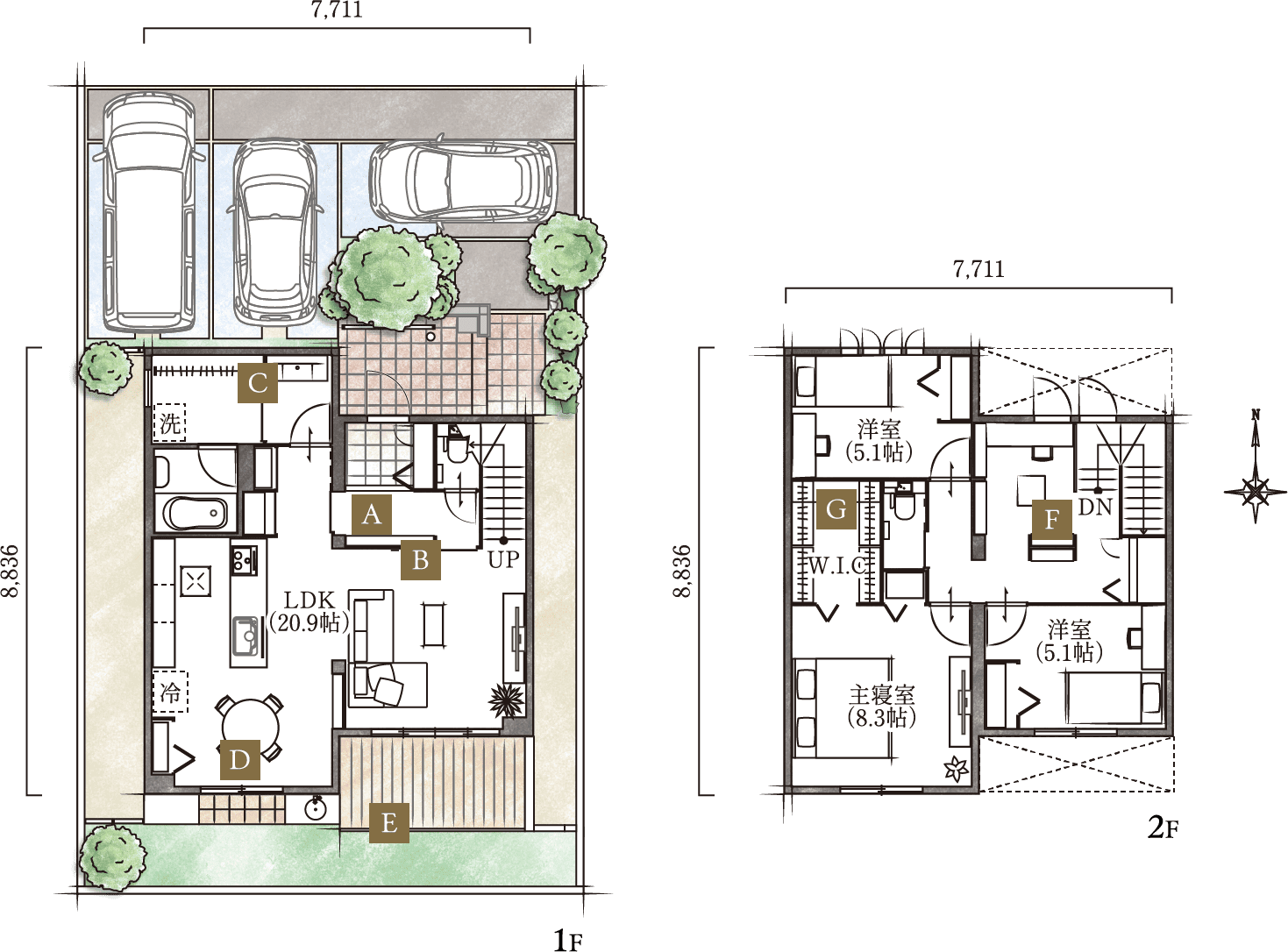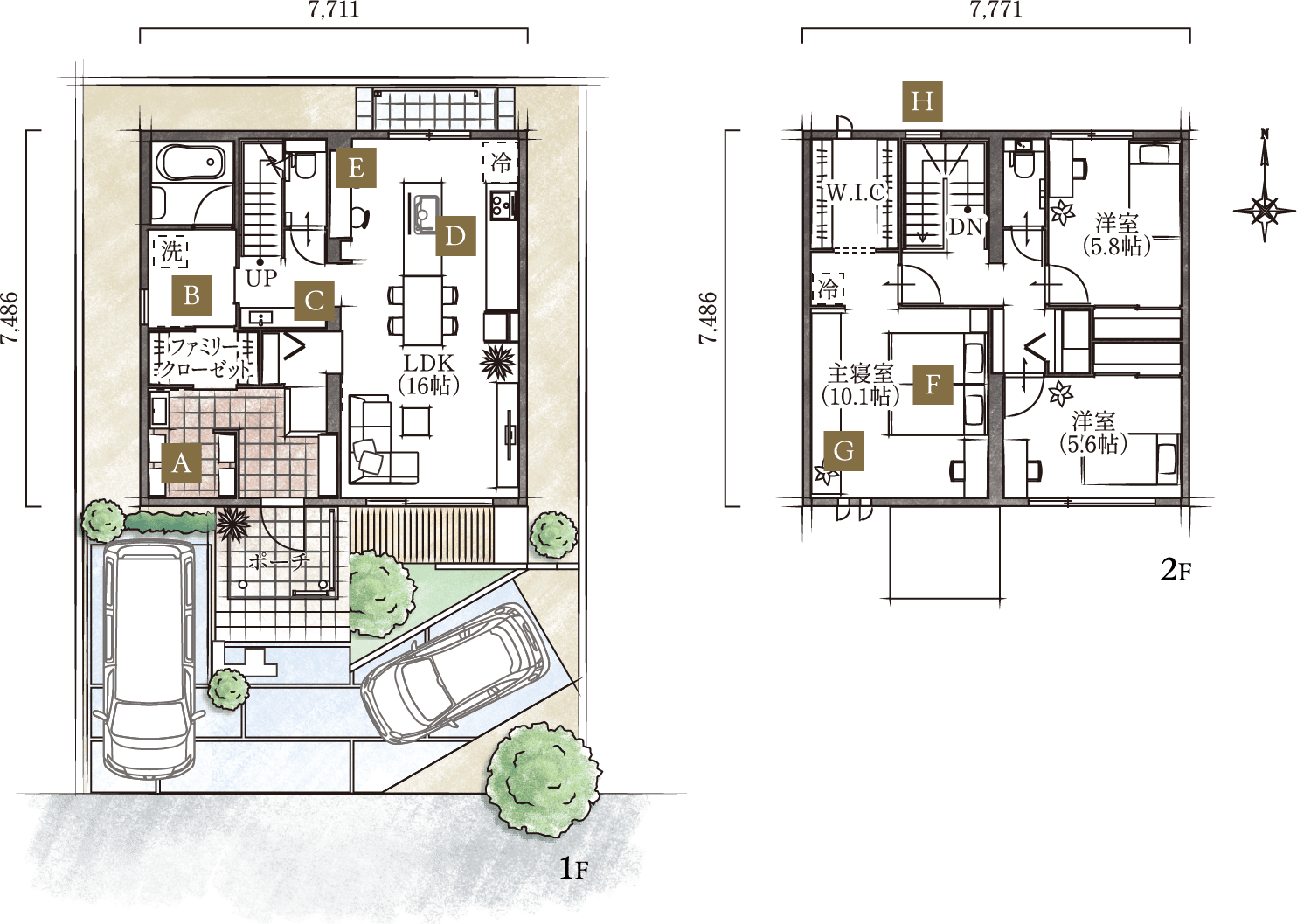 □1階面積:60.15㎡ □2階面積:60.15㎡