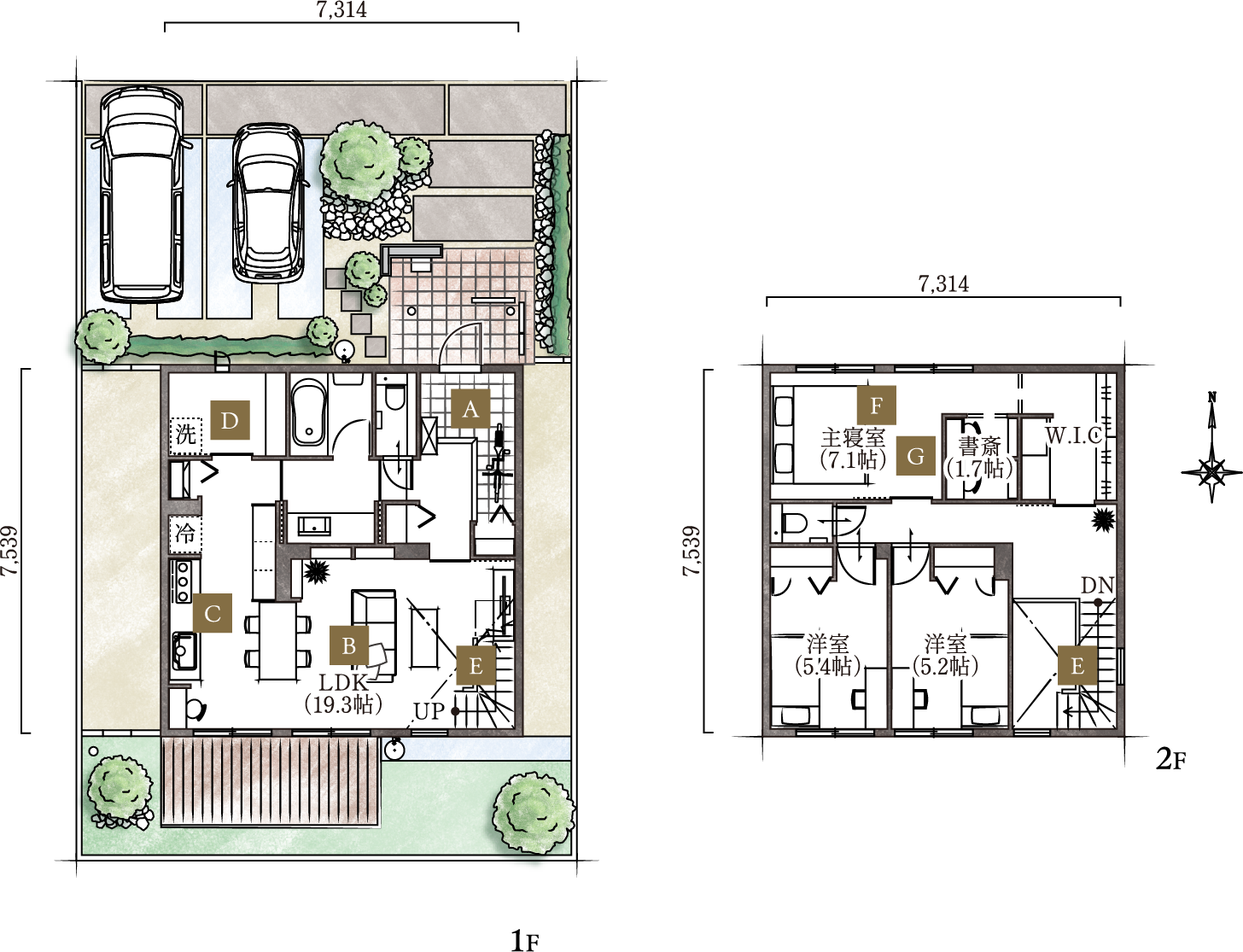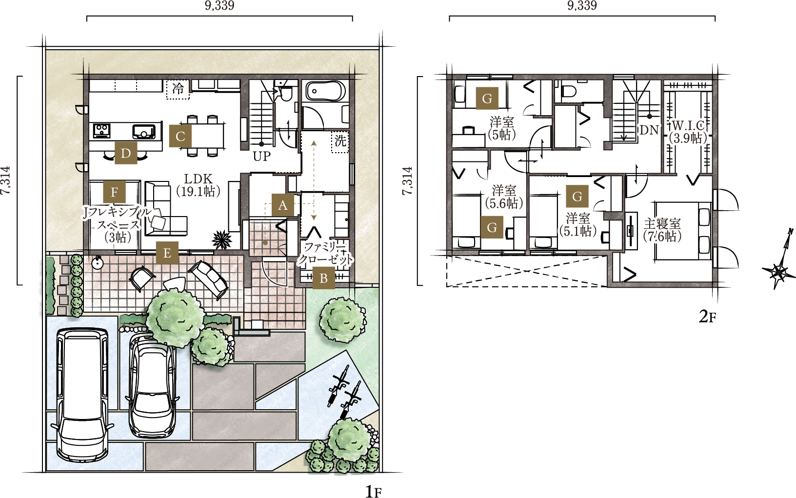 □1階面積:59.31㎡ □2階面積:55.14㎡